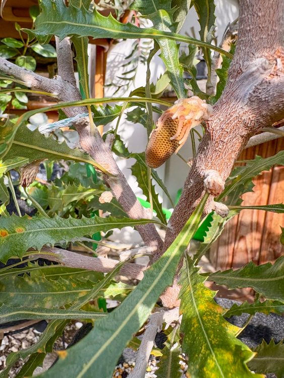 わが家のバンクシアカレイは、日当たりと風通しの良い軒下に置いて管理しています。