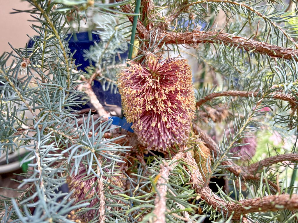 根腐れの心配よりもとにかく水切れが怖いので、わが家の西バンクシアの中では潅水のサイクル早めで管理しています。