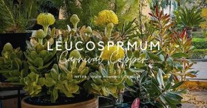 「カーニバルコッパー」は、非常に花つきが良く、イエローの花と多肉質な大きな葉が特徴的で、個性的なリューコスペルマムの中でも特に風変わりな品種です。樹高幅は1.5〜2mほどと比較的コンパクトに収まります。